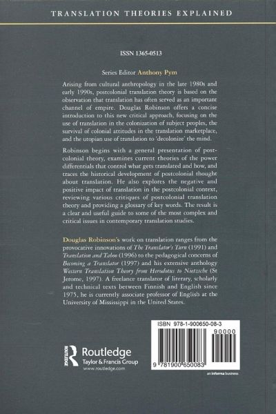 Arising from cultural anthropology in the late 1980s and early 1990s, postcolonial translation theory is based on the observation that translation has often served as an important channel of empire. Douglas Robinson begins with a general presentation of postcolonial theory, examines current theories of the power differentials that control what gets translated and how, and traces the historical development of postcolonial thought about translation. He also explores the negative and positive impact of translation in the postcolonial context, reviewing various critiques of postcolonial translation theory and providing a glossary of key words. The result is a clear and useful guide to some of the most complex and critical issues in contemporary translation studies.