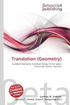 Please note that the content of this book primarily consists of articles available from Wikipedia or other free sources online. In Euclidean geometry, a translation is moving every point a constant distance in a specified direction. It is one of the rigid motions (other rigid motions include rotation and reflection). A translation can also be interpreted as the addition of a constant vector to every point, or as shifting the origin of the coordinate system. A translation operator is an operator T_mathbf{delta} such that T_mathbf{delta} f(mathbf{v}) = f(mathbf{v}+mathbf{delta}). If v is a fixed vector, then the translation Tv will work as Tv(p) = p + v. If T is a translation, then the image of a subset A under the function T is the translate of A by T. The translate of A by Tv is often written A + v.