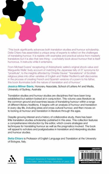 Translation studies and humour studies are disciplines that have been long-established but seldom looked at in conjunction. This volume uses literature as the common ground and examines issues of translating humour within a range of different literary traditions. It begins with an analysis of humour and translation in every day life, including jokes and cross-cultural humour, and then moves on to looking at humour and translation in literature through the ages. Despite growing interest and a history of collaborative study, there has been little translation studies scholarship published in this area. This collection features a comprehensive introduction by the editor, which covers strategies and techniques for translating humour as well as the pragmatics involved. The book will appeal to scholars and postgraduates in translation and interpreting studies and humour studies.