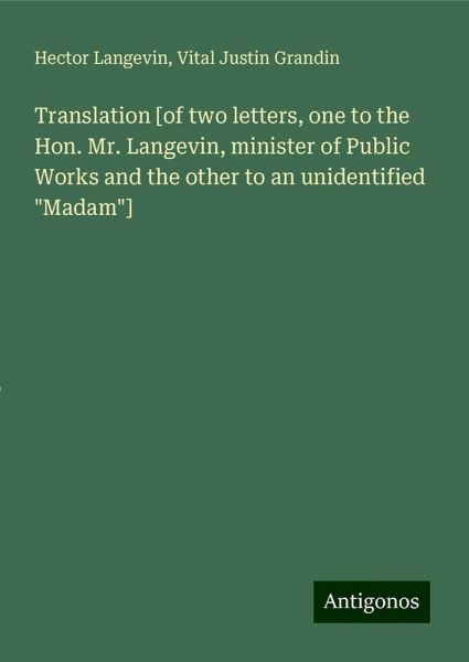 Translation [of two letters, one to the Hon. Mr. Langevin, minister of Public Works and the other to an unidentified