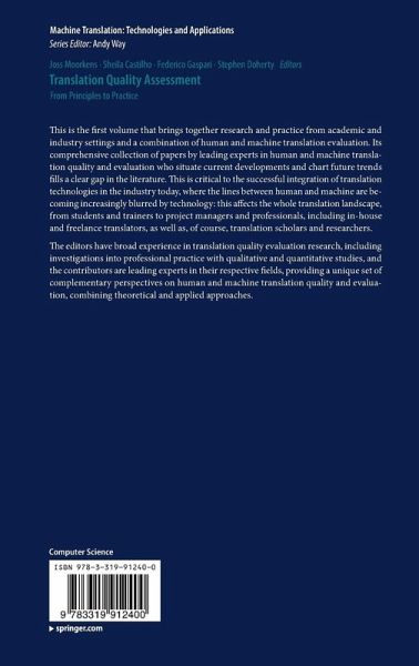 "Translation Quality Assessment: From Principles to Practice offers a broad coverage of a number of approaches to human and machine translation quality assessment (TQA) based on a wide range of practices from research, industry and academia. ... this book is a very useful guide for students, researchers and practitioners in the field, including very interesting contributions that can inspire the reader in various directions." (Emmanouela Patiniotaki, The Journal of Specialised Translation, Issue 32, July, 2019)