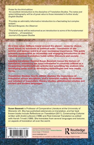 Translation Studies, fourth edition displays the importance of translation across disciplines, and is essential reading for students and scholars of translation, literary studies, globalisation studies and ancient and modern languages.