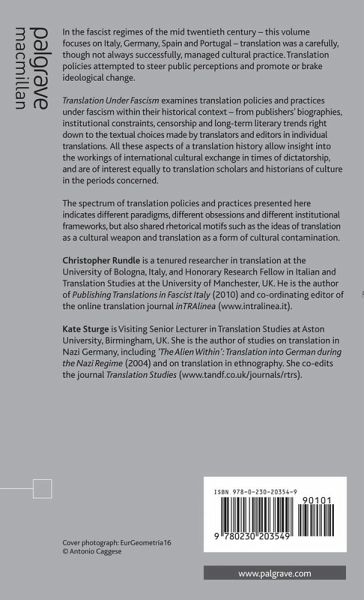 'A most welcome addition to the scholarship on translation and publishing within highly politicixed environments, this collection will undoubtedly become an authoritative sourcebook for those who wish to learn more about the meeting of translation and culture in twentieth-century contexts of European fascisms.' - Target