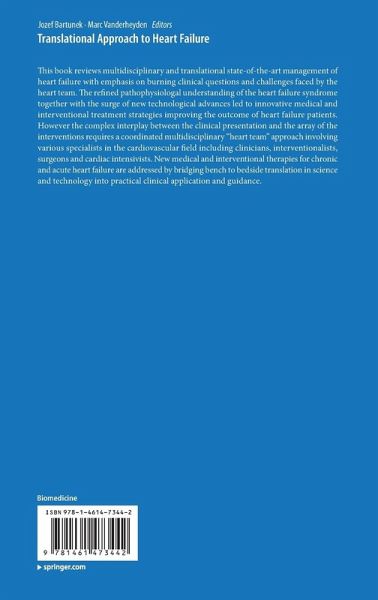 The refined pathophysiologal understanding of the heart failure syndrome together with the surge of new technological advances led to innovative medical and interventional treatment strategies improving the outcome of heart failure patients. However the complex interplay between the clinical presentation and the array of the interventions requires a coordinated multidisciplinary "heart team" approach involving various specialists in the cardiovascular field including clinicians, interventionalists, surgeons and cardiac intensivists. In this book, opinion leaders will review of state-of-the-art management of heart failure with particular emphasis on burning clinical questions and challenges faced by the heart team. New medical and interventional therapies for chronic and acute heart failure are addressed by bridging bench to bedside translation in science and technology into practical clinical application and guidance.