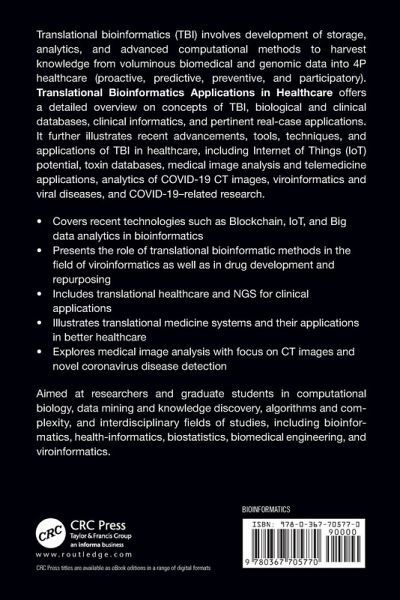 This book offers a detailed overview and concepts of translation bioinformatics (TBI), biological/clinical databases, clinical informatics, and pertinent real-case applications. It explains advancements, tools, techniques, and applications of TBI including IoT, toxin databases, medical image analysis including COVID-19 CT-images, and so forth.