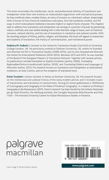 How do translators manage relations with parties in a position of authority and power? The book investigates the intellectual, social and professional identity of translators and interpreters across different time periods and locations when their role involves a negotiation with political powers and cultural authorities.