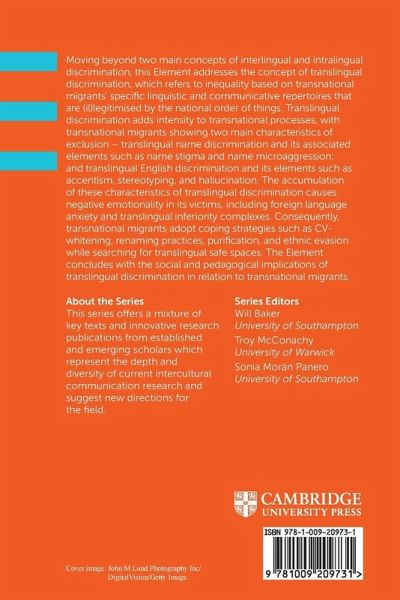 Moving beyond two main concepts of 'interlingual' and 'intralingual' discrimination, this Cambridge Element addresses the concept of 'translingual discrimination', which refers to inequality based on transnational migrants' specific linguistic and communicative repertoires that are (il)legitimized by the national order of things.