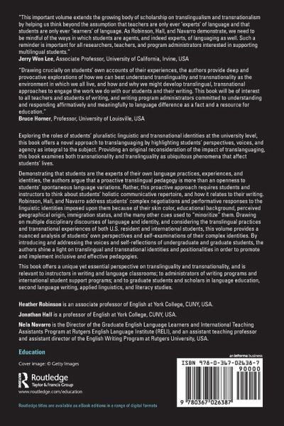 Providing an original reconsideration of the impact of translanguaging, this book examines both transnationality and translinguality as ubiquitous phenomena that affect students' lives.
