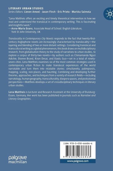 Translocality in Contemporary City Novels responds to the fact that twenty-first-century Anglophone novels are increasingly characterised by translocality-the layering and blending of two or more distant settings. Considering translocal and transcultural writing as a global phenomenon, this book draws on multidisciplinary research, from globalisation theory to the study of narratives to urban studies, to explore a corpus of thirty-two novels-by authors such as Chimamanda Ngozi Adichie, Dionne Brand, Kiran Desai, and Xiaolu Guo-set in a total of ninety-seven cities. Lena Mattheis examines six of the most common strategies used in contemporary urban fiction to make translocal experiences of the world narratable and turn them into relatable stories: simultaneity, palimpsests, mapping, scaling, non-places, and haunting. Combining and developing further theories, approaches, and techniques from a variety of research fields-including narratology, human geography, transculturality,diaspora spaces, and postcolonial perspectives-Mattheis develops a set of cross-disciplinary techniques in literary urban studies.