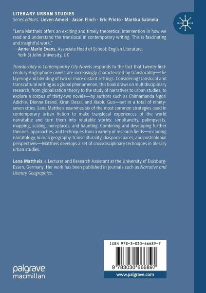 "Mattheis's Translocality in Contemporary City Novels not only effectively identifies some main narrative devices in the extensive corpus of city novels featuring translocal space; her analysis also opens up the possibility of empirically examining different or intersectional identities in translocal writings ... . The book as well as the possible future findings reflect our lived urban experiences, which are always filled with layers as well as particularities that account for our translocal identities." (Kai Qing Tan, Anglistik, Vol. 33 (3), 2022)