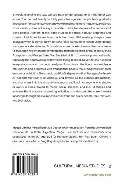 Is media changing the way we see transgender people or is it the other way around? In the past twenty to thirty years, transgender people have gradually appeared in films and television shows with more and more frequency. However, more visibility does not always translate to a higher degree of acceptance of trans people. Authors in this book studied the most popular programs and movies of all times to see how much (and how little) media portrayals have changed when it comes down to trans folks. Although in recent years openly transgender celebrities and fictional characters have broken into the mainstream to challenge hegemonic understandings of this population, productions such as Transparent and Orange Is the New Black fall victim to commonplace portrayals, repeating the negative tropes they were trying to resist. Nevertheless, nuanced interpretations and thorough analyses from this collection show evidence that movies and programs with transgender people make progress fromtotal erasure or invisibility. Transmedia and Public Representation: Transgender People in Film and Television is as complex and diverse as the authors, productions, and characters in it. It is a must-have, must-read book for anyone who studies or works in areas related to media, social sciences, and LGBTQ studies and activism. But it is also an appealing invitation to understand the current media landscape through the eyes and voices of trans and queer people, their relatives, and their allies.