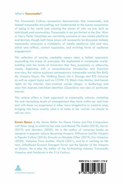 This collection of concise, readable essays takes a holistic approach, expanding the areas of everyday life implicated in transmedia worldbuilding and the levels of immersion that they, purposely or otherwise, create. Beginning with a comprehensive introduction and historical overview, the volume explores contemporary transmedia worlds like Buffy the Vampire Slayer, The Walking Dead, Life is Strange and BTS Universe as well as urgent topics such as COVID-19, Black Lives Matter, and human rights on the internet. User-created worlds (Magic: A Gathering) and ones that express individual identities (Queerskins) are also of particular interest.