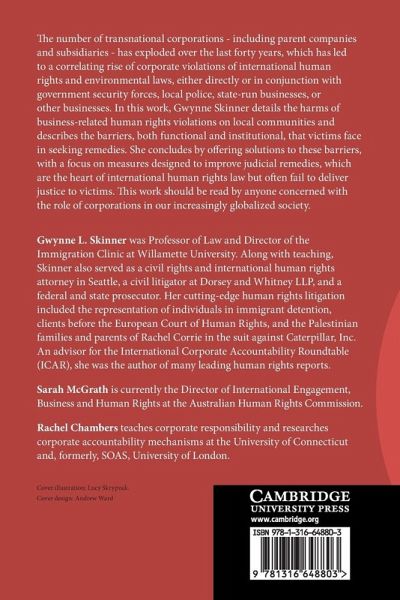 Documenting the recent rise of transnational corporations, Skinner details the business-related human rights and environmental law violations inflicted on local communities - along with the barriers victims face when seeking remedies. This book will interest scholars, policymakers, and anyone concerned about the role of corporations in our increasingly globalized society.