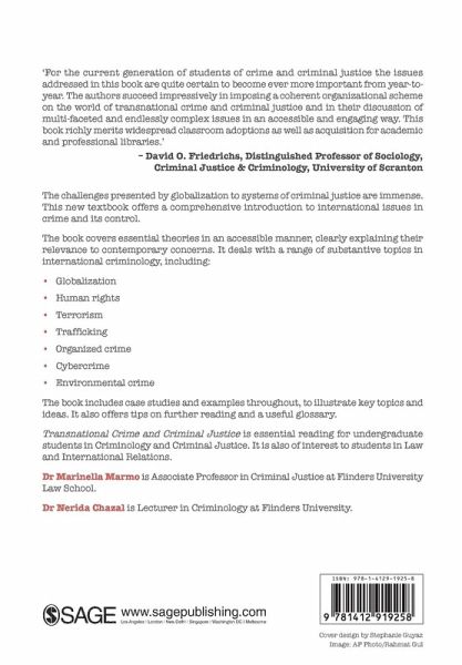 Chapter One: Introduction Part 1: Approaches to Transnational Crime and Justice Chapter Two: Globalization and Mobility Chapter Three: Risk, Networks and Cyberspace Chapter Four: The Creation and Circulation of Justice Norms Part 2: Forms of Transnational Crimes Chapter Five: Global Mobility Markets: The Migration of the 'Body' and its Exploitation Chapter Six: Organized Crime: Threat and Response in the Global Era Chapter Seven: Terrorism in a Networked World Chapter Eight: Crimes against the Environment Chapter Nine: State Crime, Human Rights and Crimes of Globalization Chapter Ten: Towards a Global Criminal Justice?