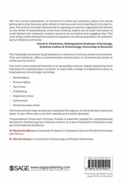 Chapter One: Introduction Part 1: Approaches to Transnational Crime and Justice Chapter Two: Globalization and Mobility Chapter Three: Risk, Networks and Cyberspace Chapter Four: The Creation and Circulation of Justice Norms Part 2: Forms of Transnational Crimes Chapter Five: Global Mobility Markets: The Migration of the 'Body' and its Exploitation Chapter Six: Organized Crime: Threat and Response in the Global Era Chapter Seven: Terrorism in a Networked World Chapter Eight: Crimes against the Environment Chapter Nine: State Crime, Human Rights and Crimes of Globalization Chapter Ten: Towards a Global Criminal Justice?