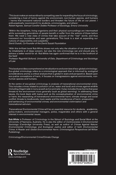 How we interpret and respond to global developments depends upon how we define environmental harm, how we envisage the protection of human, ecological and animal rights, and how we understand the power and interests that underpin recent trends and issues. This book provides a comprehensive introduction to and overview of eco-global criminology.