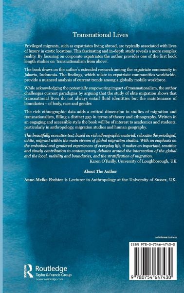 Privileged migrants, such as expatriates living abroad, are typically associated with lives of luxury in exotic locations. This fascinating and in-depth study reveals a more complex reality. By focusing on corporate expatriates the author provides one of the first book length studies on 'transnationalism from above'. The book draws on the author's extended research among the expatriate community in Jakarta, Indonesia. The findings, which relate to expatriate communities worldwide, provide a nuanced analysis of current trends among a globally mobile workforce. While acknowledging the potentially empowering impact of transnationalism, the author challenges current paradigms by arguing that the study of elite migration shows that transnational lives do not always entail fluid identities but the maintenance of boundaries - of body, race and gender. The rich ethnographic data adds a critical dimension to studies of migration and transnationalism, filling a distinct gap in terms of theory and ethnography. Written in an engaging and accessible style the book will be of interest to academics and students, particularly in anthropology, migration studies and human geography.