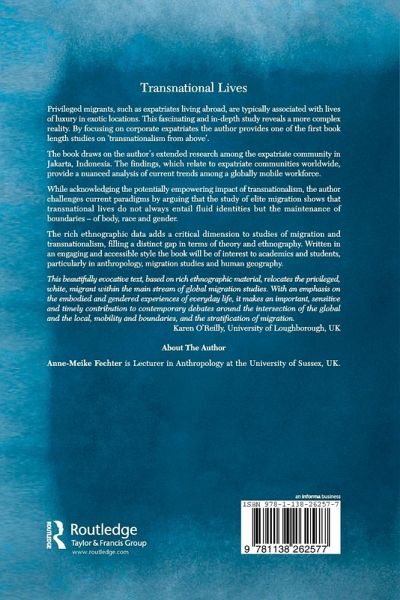 Privileged migrants, such as expatriates living abroad, are typically associated with lives of luxury in exotic locations. This fascinating and in-depth study reveals a more complex reality. By focusing on corporate expatriates the author provides one of the first book length studies on 'transnationalism from above'. The book draws on the author's extended research among the expatriate community in Jakarta, Indonesia. The findings, which relate to expatriate communities worldwide, provide a nuanced analysis of current trends among a globally mobile workforce. While acknowledging the potentially empowering impact of transnationalism, the author challenges current paradigms by arguing that the study of elite migration shows that transnational lives do not always entail fluid identities but the maintenance of boundaries - of body, race and gender. The rich ethnographic data adds a critical dimension to studies of migration and transnationalism, filling a distinct gap in terms of theory and ethnography. Written in an engaging and accessible style the book will be of interest to academics and students, particularly in anthropology, migration studies and human geography.