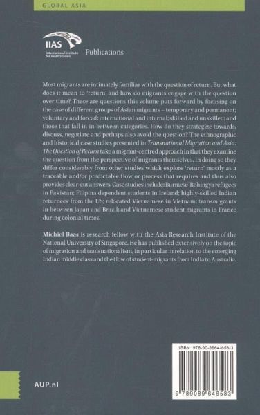 As our increasingly globalized world alters the dynamics of migration, the ideas that migrants have about returning to their home countries have evolved as well. This diverse collection examines the changes and complexities of migration patterns in a range of Asian countries and cities, exploring how globalization and transnationalism shape and give meaning to the migrant experience. From Japanese-Brazilian transmigrants and Filipina students in Ireland to skilled migrants from India, the authors address migrants' backgrounds, ambitions, and opportunities to offer intriguing insights and propose fascinating new questions about the lives of migrants in today's world.