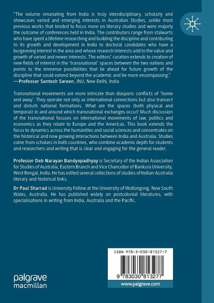 Transnational movements are more intricate than diasporic conflicts of 'home and away'. They operate not only as international connections but also transect and disturb national formations. What are the spaces (both physical and temporal) in and around which transnational exchanges occur? Much discussion of the transnational focuses on international movements of law, politics and economics as they relate to Europe and the Americas. This book extends the focus to dynamics across the humanities and social sciences and concentrates on the historical and now growing interactions between India and Australia. Studies come from scholars in both countries, who combine academic depth for students and researchers and writing that is clear and engaging for the general reader.
