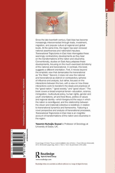 In recent decades, East Asia has become increasingly interconnected through trade, investment, migration, and popular culture at regional and global levels. At the same time, the region has seen renewed national assertiveness and nationalist impulses. The book interrogates these seemingly contradictory developments as they bear on the transformations of the nation and citizenship in East Asia. Conventionally, studies on East Asia juxtapose these developments, focusing on the much-exercised dichotomy of the national and transnational. In contrast, this book suggests a different orientation. First, it moves beyond the simplistic view that demarcates the transnational as "the West". Second, it does not view the national and transnational as distinct or contradictory spheres of influence and analysis, but rather, focuses on the interactions between the two, with a view on how these interactions work to transform the ideals and practices of the "good nation", "good society", and "good citizen". The chapters cover a broad range of empirical research--education, science, immigration, multicultural policy, human rights, gender and youth orientations, art and food flows, politics of values and regional identity--which highlight the ways in which the nation is reconfigured, and the relationship between the citizen and (national) collective is redefined, in relation to transnational dynamics and frameworks. Transnational Trajectories in East Asia provides a new perspective on and original analysis of transnational processes, bringing a fresh understanding to developments of the nation and citizenship in the region. It will be of great interest to students and scholars of transnationalization and globalization; comparative citizenship, migration, and multiculturalism; and Asian politics, society, and regionalism.