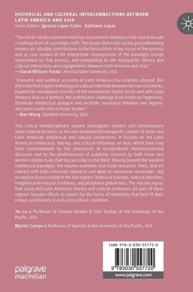 This critical interdisciplinary volume investigates modern and contemporary Asian cultural products in the non-westernized transpacific context of Asian and Latin American intellectual and cultural connections. It focuses on the Latin American intellectual, literary, and cultural influences on Asia, which have long been overshadowed by the dominance of Europe/North America-oriented discourse and by the predominance of academic research by both Asian and western intellectuals that focuses only on the West. Moving beyond the western intellectual paradigm, the volume examines how Asian literature, films, and art interact with Latin American literature and ideas to reexamine, reconsider, and re-explore issues related to the two regions' historical traumas, cultural identities, indigenous/vernacular traditions, and peripheral global-ness. The volume argues that Asian and Latin American literary and cultural endeavors are part of these regions' broader efforts to search for the forms of modernity that best fit their unique sociohistorical and sociocultural conditions.