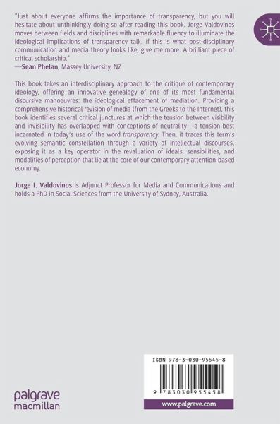 This book takes an interdisciplinary approach to the critique of contemporary ideology, offering an innovative genealogy of one of its most fundamental discursive manoeuvres: the ideological effacement of mediation. Providing a comprehensive historical revision of media (from the Greeks to the Internet), this book identifies several critical junctures at which the tension between visibility and invisibility has overlapped with conceptions of neutrality-a tension best incarnated in today's use of the word transparency. Then, it traces this term's evolving semantic constellation through a variety of intellectual discourses, exposing it as a key operator in the revaluation of ideals, sensibilities, and modalities of perception that lie at the core of our contemporary attention-based economy.