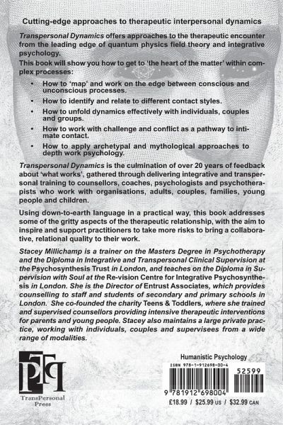 Cutting-edge approaches to therapeutic interpersonal dynamics Transpersonal Dynamics offers approaches to the therapeutic encounter from the leading edge of quantum physics field theory and integrative psychology. This book will show you how to get to 'the heart of the matter' within complex processes: How to 'map' and work on the edge between conscious and unconscious processes. How to identify and relate to different contact styles. How to unfold dynamics effectively with individuals, couples and groups. How to work with challenge and conflict as a pathway to intimate contact. How to apply archetypal and mythological approaches to depth work psychology. Transpersonal Dynamics is the culmination of over 20 years of feedback about 'what works', gathered through delivering integrative and transpersonal training to counsellors, coaches, psychologists and psychotherapists who work with organisations, adults, couples, families, young people and children. Using down-to-earth language in a practical way, this book addresses some of the gritty aspects of the therapeutic relationship, with the aim to inspire and support practitioners to take more risks to bring a collaborative, relational quality to their work.