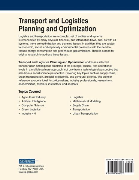 Logistics and transportation are a complex set of entities and systems interconnected by many physical, financial, and information flows, and, as with all systems, there are optimization and planning issues. In addition, they are subject to economic, social, and especially environmental pressures with the need to reduce energy consumption and greenhouse gas emissions. There is a need for original research to address these issues. Transport and Logistics Planning and Optimization addresses selected transportation and logistics problems at the strategic, tactical, and operational levels in a multidisciplinary approach, not only from a technological perspective but also from a social science perspective. Covering key topics such as supply chain, urban transportation, artificial intelligence, and computer science, this premier reference source is ideal for policymakers, industry professionals, researchers, academicians, scholars, instructors, and students.