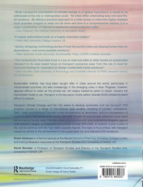 Sustainable travel behaviours have long been sought after in cities around the world, particularly in industrialised countries, but also increasingly in the emerging cities of Asia, South America and Africa. Progress however appears difficult to make as the private car, still largely fuelled by petrol or diesel, remains the mainstream mode of use. Transport is the key sector where carbon dioxide (CO2) emissions are difficult to reduce. This book seeks to develop achievable low CO2 emission futures for transport in a range of international case studies. The aim is that the scenarios as developed, and the consideration of implementation and transition issues, can help us plan for and achieve attractive future lifestyles at the city level, rather than 'sleepwalk' into climate change difficulties, oil scarcity, poor qualities of life, and to continue with the large casualty figures. High fuel prices in the future may mean that parts of our cities and wider regions become redundant and residents suffer from low levels of accessibility. The topic is thus critical, with transport viewed as central to the achievement of the sustainable city and reduced CO2 emissions. The book's original content and presentation draws on contemporary culture to demonstrate the need for a wider and more transparent debate on future travel behaviours and lifestyles, acceptability and implementability, and the potential for using different means to sell a different but attractive future.