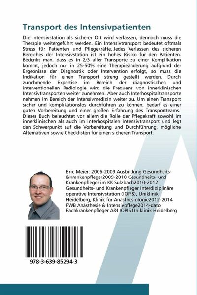 Die Intensivstation als sicherer Ort wird verlassen, dennoch muss die Therapie weitergeführt werden. Ein Intensivtransport bedeutet oftmals Stress für Patienten und Pflegekräfte. Jedes Verlassen des sicheren Bereiches der Intensivstation ist ein hohes Risiko für den Patienten. Bedenkt man, dass es in 2/3 aller Transporte zu einer Komplikation kommt, jedoch nur in 25-50% eine Therapieänderung aufgrund der Ergebnisse der Diagnostik oder Intervention erfolgt, so muss die Indikation für einen Transport streng gestellt werden. Durch zunehmende Expertise im Bereich der diagnostischen und interventionellen Radiologie wird die Frequenz von innerklinischen Intensivtransporten weiter zunehmen. Aber auch Interhospitaltransporte nehmen im Bereich der Intensivmedizin weiter zu. Um einen Transport sicher und komplikationslos durchführen zu können, bedarf es einer guten Vorbereitung und einer großen Erfahrung des Transportteams. Dieses Buch beleuchtet vor allem die Rolle der Pflegekraft sowohl im innerklinischen als auch im interhospitalen Intensivtransport und legt den Schwerpunkt auf die Vorbereitung und Durchführung, mögliche Alternativen sowie Checklisten für einen sicheren Transport.