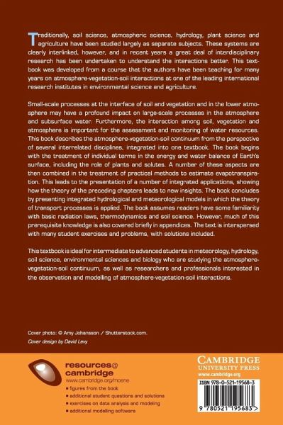 Traditionally, soil science, atmospheric science, hydrology, plant science and agriculture have been studied largely as separate subjects. These systems are clearly interlinked, however, and in recent years a great deal of interdisciplinary research has been undertaken to better understand the interactions. This textbook was developed from a course that the authors have been teaching for many years on atmosphere-vegetation-soil interactions at one of the leading international research institutes in environmental science and agriculture. The book describes the atmosphere-vegetation-soil continuum from the perspective of several interrelated disciplines, integrated into one textbook. The text is interspersed with many student exercises and problems, with solutions included. It will be ideal for intermediate to advanced students in meteorology, hydrology, soil science, environmental sciences and biology who are studying the atmosphere-vegetation-soil continuum, as well as researchers and professionals interested in the observation and modelling of atmosphere-vegetation-soil interactions.