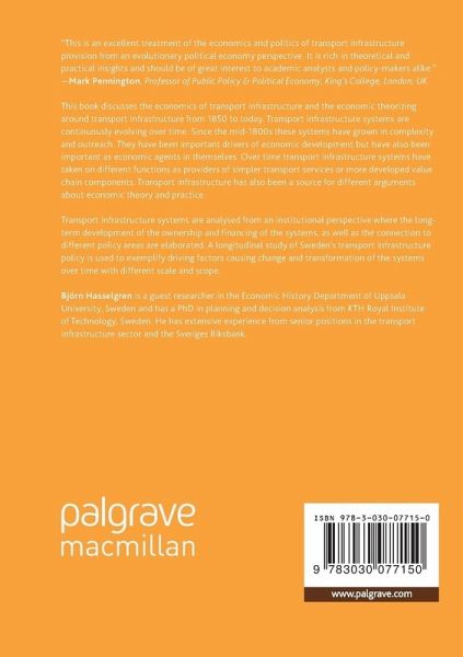 This book discusses the economics of transport infrastructure and the economic theorizing around transport infrastructure from 1850 to today. Transport infrastructure systems are continuously evolving over time. Since the mid-1800s these systems have grown in complexity and outreach. They have been important drivers of economic development but have also been important as economic agents in themselves. Over time transport infrastructure systems have taken on different functions as providers of simpler transport services or more developed value chain components. Transport infrastructure has also been a source for different arguments about economic theory and practice.