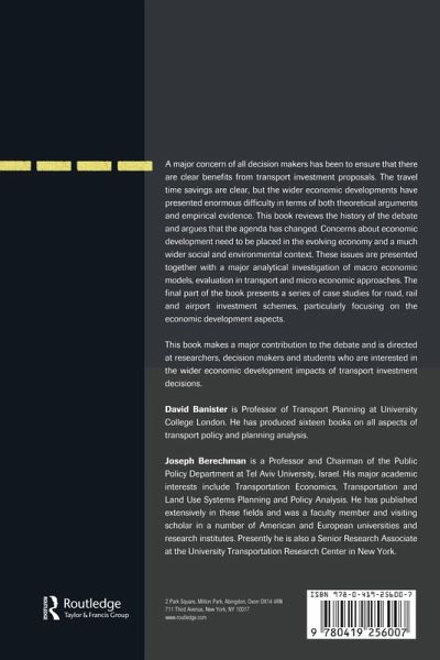 A major concern of all decision makers has been to ensure that there are clear benefits from transport investment proposals. The travel time savings are clear, but the wider economic developments have presented enormous difficulty in terms of both theoretical arguments and empirical evidence. This book reviews the history of the debate and argues that the agenda has changed. These issues are presented together with a major analytical investigation of macroeconomic models, evaluation in transport and microeconomic approaches. The final part of the book presents a series of case studies for road, rail and airport investment schemes, particularly focusing on the economic development aspects.