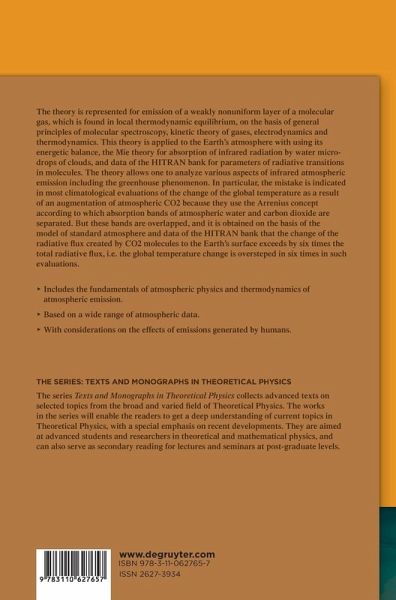 This book sets out to give a rigorous mathematical description of the greenhouse effect through the theory of infrared atmospheric emission. In contrast to traditional climatological analysis, this approach eschews empirical relations in favour of a strict thermodynamical derivation, based on data from NASA and from the HITRAN spectroscopy database. The results highlight new aspects of the role of clouds in the greenhouse effect.