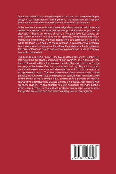 Fluid flows that transfer heat and mass often involve drops and bubbles, particularly if there are changes of phase in the fluid in the formation or condensation of steam, for example. Such flows pose problems for the chemical and mechanical engineer significantly different from those posed by single-phase flows. This book reviews the current state of the field and will serve as a reference for researchers, engineers, teachers, and students concerned with transport phenomena. It begins with a review of the basics of fluid flow and a discussion of the shapes and sizes of fluid particles and the factors that determine these. The discussion then turns to flows at low Reynolds numbers, including effects due to phase changes or to large radial inertia. Flows at intermediate and high Reynolds numbers are treated from a numerical perspective, with reference to experimental results. The next chapter considers the effects of solid walls on fluid particles, treating both the statics and dynamics of the particle-wall interaction and the effects of phase changes at a solid wall. This is followed by a discussion of the formation and breakup of drops and bubbles, both with and without phase changes. The last two chapters discuss compound drops and bubbles, primarily in three-phase systems, and special topics, such as transport in an electric field.