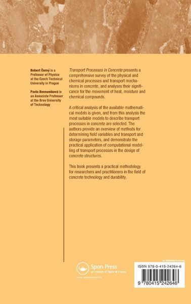 Transport Processes in Concrete presents a comprehensive survey of the physical and chemical processes and transport mechanisms in concrete, and analyses their significance for the movement of heat, moisture and chemical compounds. A critical analysis of the available mathematical models is given, and from this analysis the most suitable models to describe transport processes in concrete are selected. The authors provide an overview of methods for determining field variables and transport and storage parameters, and demonstrate the practical application of computational modelling of transport processes in the design of concrete structures. This book presents a practical methodology for researchers and practitioners in the field of concrete technology and durability.