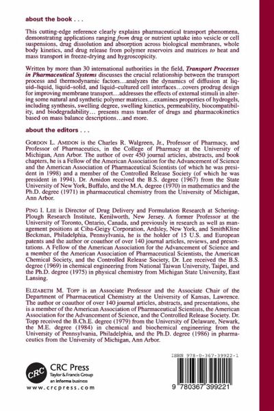 This cutting-edge reference clearly explains pharmaceutical transport phenomena, demonstrating applications ranging from drug or nutrient uptake into vesicle or cell suspensions, drug dissolution and absorption across biological membranes, whole body kinetics, and drug release from polymer reservoirs and matrices to heat and mass transport in freeze-drying and hygroscopicity. Focuses on practical applications of drug delivery from a physical and mechanistic perspective, highlighting biological systems. Written by more than 30 international authorities in the field, Transport Processes in Pharmaceutical Systems 1. discusses the crucial relationship between the transport process and thermodynamic factors 2. analyzes the dynamics of diffusion at liquid-liquid, liquid-solid, and liquid-cultured cell interfaces 3. covers prodrug design for improving membrane transport 4. addresses the effects of external stimuli in altering some natural and synthetic polymer matrices 5. examines properties of hydrogels, including synthesis, swelling degree, swelling kinetics, permeability, biocompatibility, and biodegradability 6. presents mass transfer of drugs and pharmacokinetics based on mass balance descriptions 7. and more! Containing over 1000 references and more than 1100 equations, drawings, photographs, micrographs, and tables, Transport Processes in Pharmaceutical Systems is a must-read resource for research pharmacists, pharmaceutical scientists and chemists, chemical engineers, physical chemists, and upper-level undergraduate and graduate students in these disciplines.
