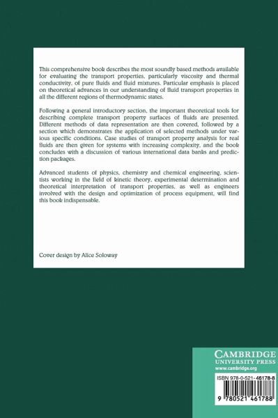 This comprehensive book describes the most soundly based methods currently available for evaluating the transport properties, particularly viscosity and thermal conductivity, of pure fluids and fluid mixtures. Particular emphasis is placed on recent theoretical advances in our understanding of fluid transport properties in all the different regions of thermodynamic states. Following a general introductory section, the important theoretical tools for describing complete transport property surfaces of fluids are prsented. Different methods of data representation are then covered, followed by a section which demonstrates the application of selected methods under various specific conditions. Case studies of transport property analysis for real fluids are then given for system with increasing complexity, and the book concludes with a discussion of various international data banks and prediction packages. Advanced students of physics, chemistry and chemical engineering, scientists working in the field of kinetic theory, experimental determination and theoretical interpretation of transport properties, as well as engineers involved with the design and optimization of process equipment, will find this book indispensable.