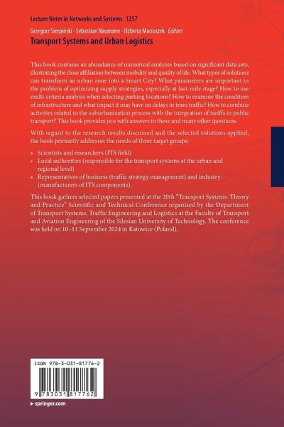 This book gathers selected papers presented at the 20th "Transport Systems. Theory and Practice" Scientific and Technical Conference organised by the Department of Transport Systems, Traffic Engineering and Logistics at the Faculty of Transport and Aviation Engineering of the Silesian University of Technology. The conference was held on 10-11 September 2024 in Katowice (Poland).
