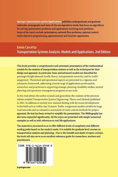 "This book provides a rigorous and comprehensive coverage of transportation models and planning methods and is a must-have to anyone in the transportation community, including students, teachers, and practitioners." Moshe Ben-Akiva, Massachusetts Institute of Technology.