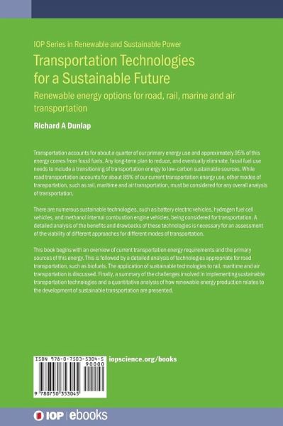 Transportation is a major contributor to greenhouse gas emissions. This book provides a comprehensive overview of sustainable low-carbon technologies for road, rail, marine and air transportation.