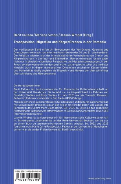 Der vorliegende Band erforscht Bewegungen der Verrückung, Querung und Grenzüberschreitung in romanischen Kulturräumen des 20. und 21. Jahrhunderts. Die Aufsätze widmen sich der interdisziplinären Verhandlung von Grenz- und Körperdiskursen in Literatur und Bildmedien. Überschreitungen rücken dabei nicht nur in physisch-räumlicher Perspektive, als Migrationsbewegungen, in den Fokus, sondern ebenso in genderspezifischer, gattungstechnischer und medialer Hinsicht. Auch in diesen transpositiven Dynamiken erscheinen Körperlichkeit und Materialität häufig zugleich als Dispositiv und Movens der Überschreitung, Überschreibung und Überzeichnung.