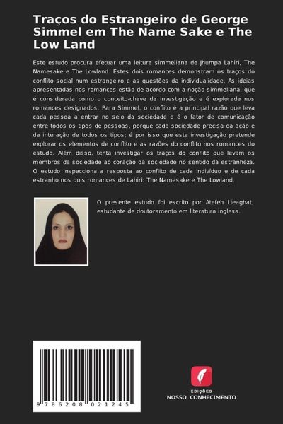 Este estudo procura efetuar uma leitura simmeliana de Jhumpa Lahiri, The Namesake e The Lowland. Estes dois romances demonstram os traços do conflito social num estrangeiro e as questões da individualidade. As ideias apresentadas nos romances estão de acordo com a noção simmeliana, que é considerada como o conceito-chave da investigação e é explorada nos romances designados. Para Simmel, o conflito é a principal razão que leva cada pessoa a entrar no seio da sociedade e é o fator de comunicação entre todos os tipos de pessoas, porque cada sociedade precisa da ação e da interação de todos os tipos; é por isso que esta investigação pretende explorar os elementos de conflito e as razões do conflito nos romances do estudo. Além disso, tenta investigar os traços do conflito que levam os membros da sociedade ao coração da sociedade no sentido da estranheza. O estudo inspecciona a resposta ao conflito de cada indivíduo e de cada estranho nos dois romances de Lahiri: The Namesake e The Lowland.