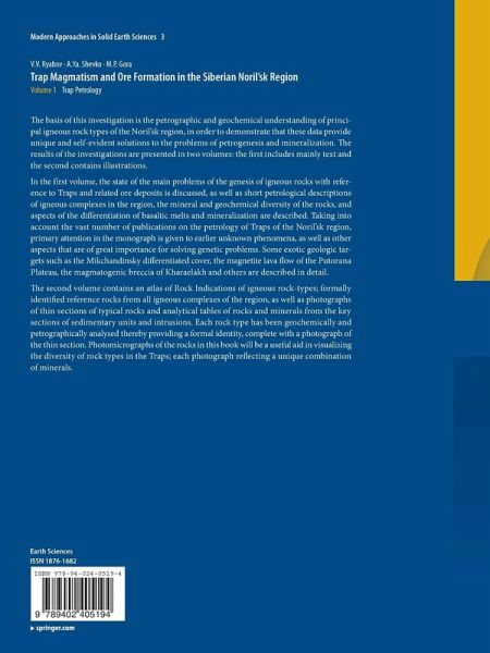 In the first volume, the state of the main problems of the genesis of igneous rocks with reference to Traps and related ore deposits is discussed, as well as short petrological descriptions of igneous complexes in the region, the mineral and geochemical diversity of the rocks, and aspects of the differentiation of basaltic melts and mineralization are described. Taking into account the vast number of publications on the petrology of Traps of the Noril'sk region, primary attention in the monograph is given to earlier unknown phenomena, as well as other aspects that are ofgreat importance for solving genetic problems. Some exotic geologic targets such as the Mikchandinsky differentiated cover, the magnetite lava flow of the Putorana Plateau, the magmatogenic breccia of Kharaelakh and others are described in detail.