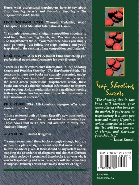 Trap Shooting Secrets takes you into the world where professionals reside. With over 132 practice tips and more than 100 illustrations it's like having a shooting coach by your side. This huge 182 page 8x11 size technical book teaches techniques of professional trap shooting; singles, handicap and double trap. Endorsed by professional shooters and ranks #1 by trap shooting magazines worldwide!