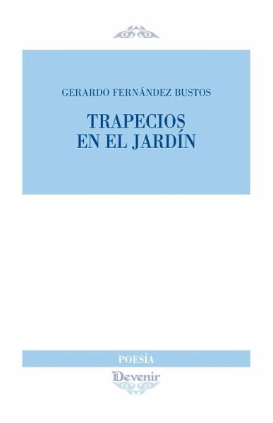 Gerardo Fernández Bustos (Madrid, 1982) trabaja como profesor de instituto. Estudió Filosofía en la Universidad Complutense de Madrid y en la París VIII Vincennes-Saint Dénis. Trapecios en el jardín es su primer libro de poemas publicado hasta la fecha. Un trapecio es un palo horizontal suspendido de dos cables. En él se desarrolla la acción del trapecista, una persona atrapada en ese punto de luz, ahí donde el foco no deja de alumbrar. Es en ese punto de luz donde se desarrolla la acción, el gesto y, en suma, el acontecimiento. Es, después del trapecio, que aparecen las ruinas como restos de eso que ha pasado, y los recuerdos como herramienta para atrapar lo ocurrido. Trapecios en el jardín se hace eco también de los jardines colgantes de Babilonia, construidos por Nabucodonosor en pleno desierto, según se cuenta, para calmar el anhelo de agua y vegetación de su amada, a la que aquel paisaje le hacía recordar