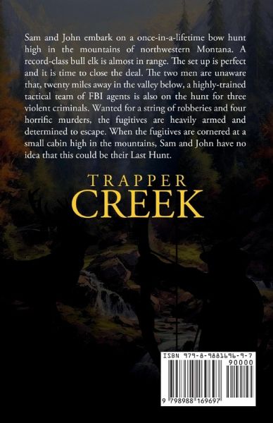 Sam and John embark on a once-in-a-lifetime bow hunt high in the mountains of northwestern Montana. A record-class bull elk is almost in range. The setup is perfect and it is time to close the deal. The two men are unaware that, twenty miles away in the valley below, a highly-trained tactical team of FBI agents is also on the hunt for three violent criminals. Wanted for a string of robberies and four horrific murders, the fugitives are heavily armed and determined to escape. When the fugitives are cornered at a small cabin high in the mountains, Sam and John have no idea that this could be their Last Hunt.