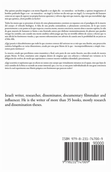 Hay quienes pueden imaginar a un mono llegando a ser algún día - en naturaleza - un hombre, y quienes imaginamos al hombre pudiendo llegar a ser - en naturaleza - un ángel (e incluso un día más que un ángel). La concepción del humano como un ser capaz de superar sus propias barreras aparentes y volverse algo más que materia, algo más que mortalidad, algo más que química. ¿Sería posible ese hecho? Todos los muros que se presentan al inicio de estos planteamientos consisten en toparnos con el paradigma de la muerte del cuerpo: el vehículo biológico. A falta de una prueba contundente, o plenamente convincente, de lo que ocurre posteriormente a este punto en lo que respecta a nuestra mente, nuestra conciencia, nuestra alma o nuestro espíritu, la vida de gran mayoría de humanos se limita a una frustrada carrera por disfrutar momentáneamente de placeres que pueden otorgar los sentidos, aun cuando una mente analítica sabría juzgar que hay un invisible árbitro de causas y efectos que va más allá de los fenómenos visuales, y que nuestro subconsciente nos advierte de cautela ante la posibilidad de un juicio en el Más Allá. ¿Qué pasaría si descubriésemos que todo lo que creemos conocer del universo no es más que una ilusión, una proyección cuántica holográfica en varias dimensiones, creada por una gran Mente de la que - incomprensiblemente a simple vista - somos parte intrínseca? La muerte, estado que percibimos como traumático y final, sería parte de este sueño ilusorio, una idea errada de nuestra propia Mente. Si bien, estaríamos ante enigmas dentro de enigmas que con esfuerzo y voluntad nos veríamos en la obligación de resolver, de modo que aspirásemos a conocer nuestra verdadera identidad y preexistencia. ¿Qué ocurriría si supiésemos que en efecto no somos este cuerpo que virtualmente miramos en el espejo, sino que lejos de estos sentidos de la física se esconde un avatar inmortal, que, a su vez, es una parte individualizada de una gran conciencia única la cual experimenta una Matrix psíquica con fenómenos que parecen reales?