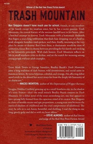 Bradley Bazzle's first novel, Trash Mountain, won the 2016 Red Hen Press Fiction Award, judged by Steve Almond. His short stories have won awards from The Iowa Review, New Ohio Review, and Third Coast. They also appear in New England Review, Epoch, Copper Nickel, Web Conjunctions, and other literary journals. Bradley grew up in Dallas, Texas, and has degrees from Yale, Indiana University, and the University of Georgia, where he taught writing. He remains in Athens, Georgia, with his wife and daughter.
